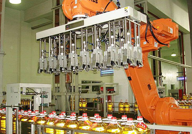 1)食用油裝箱機(jī)是一種機(jī)械、氣動(dòng)、電控一體化的設(shè)備。可包裝塑料扁瓶、圓瓶、異型瓶等各種大小的玻璃瓶。