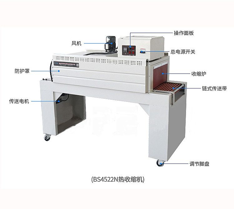 。確保輸送的平穩(wěn)性和良好的收縮效果,采用銅線電機,低噪音、壽命長、耐用。