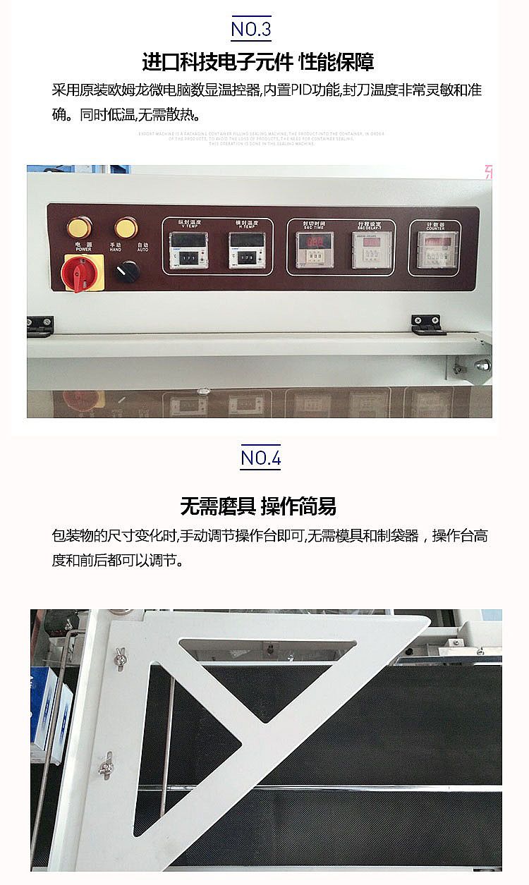 3.進口科技電子元件,性能保障:采用原裝歐姆龍微電腦數(shù)顯溫控器,內(nèi)置PLD功能,封刀溫度非常靈敏和準確。同時低溫,無需散熱。