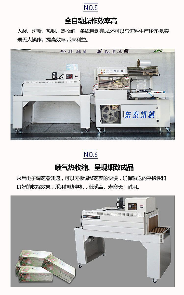 入袋、切斷、熱封、熱收縮一條線自動完成,還可以與進料生產(chǎn)線連接,實現(xiàn)無人操作。提高效率,帶來利益。