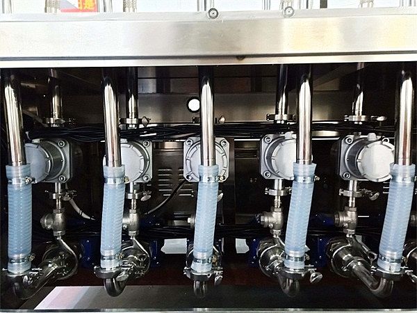 4.流量計(jì)式灌裝機(jī)是食用油灌裝機(jī)常見的灌裝方式。在每個(gè)灌裝閥上安有一個(gè)高精度的電子流量計(jì),通過計(jì)量物料的體積實(shí)現(xiàn)定量灌裝。該系列灌裝機(jī)采用流量計(jì)式計(jì)量灌裝原理,多項(xiàng)專利認(rèn)證,適用于各種規(guī)格(1-5升)的南瓜籽油、榛子油、牡丹籽油、芝麻油、山茶油、亞麻籽油、棉籽油、橄欖油、大豆油、玉米油、菜籽油等食用油灌裝。設(shè)備采用高精度的旋轉(zhuǎn)編碼器計(jì)量,保證了1%的灌裝精度,在保證灌裝精度的同時(shí),提高了20%-35%的灌裝速度,操作簡單,維護(hù)方便,節(jié)約人工成本,生產(chǎn)效率更高。