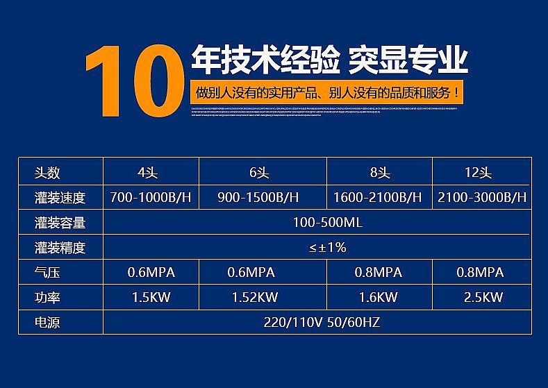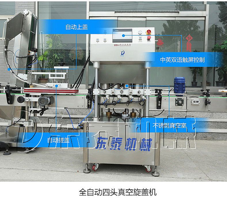 該生產(chǎn)線適合中小口徑三旋、四旋玻璃瓶調(diào)味醬的分裝,適合醬料、含顆粒黏稠物料的灌裝,物料接觸部分均采用316不銹鋼,整機304不銹鋼,符合食品衛(wèi)生標準。該機設計合理,機型小巧,立式結(jié)構,節(jié)省場地,操作方便。啟動部分均采用德國FESTO和臺灣AirTack的氣動元件。灌裝閥有氣動閥控制,灌裝精度更高,灌裝量和灌裝速度均可任意調(diào)整,灌裝悶頭采用防拉絲及升降灌裝裝置。