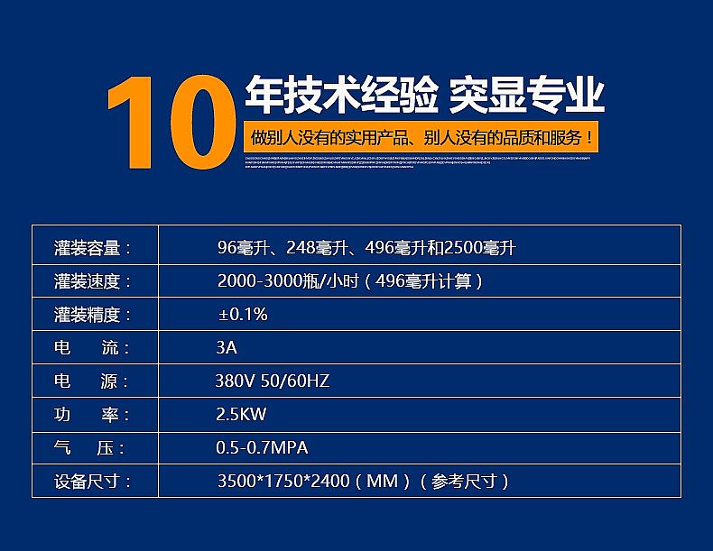7.調(diào)節(jié)便利、無(wú)瓶不灌裝、灌裝量準(zhǔn)確并具有計(jì)數(shù)功能。
