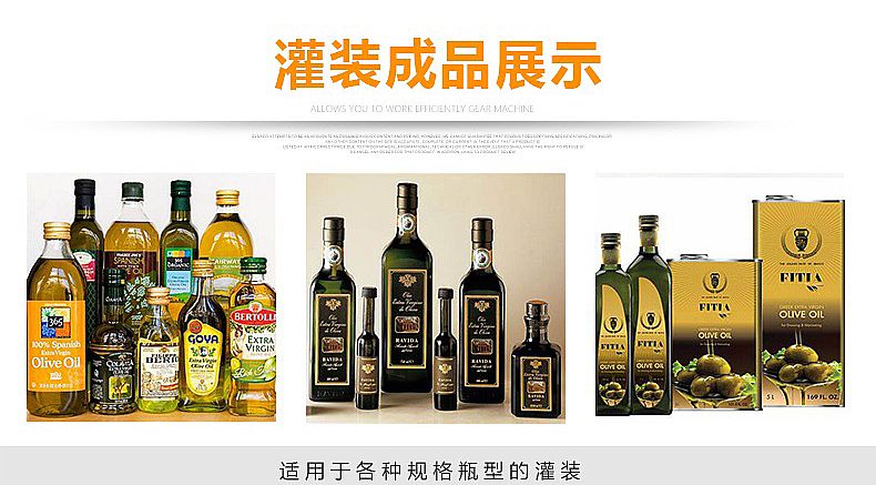 該機(jī)可與封蓋機(jī)、貼標(biāo)機(jī)等組合成為橄欖油灌裝生產(chǎn)線