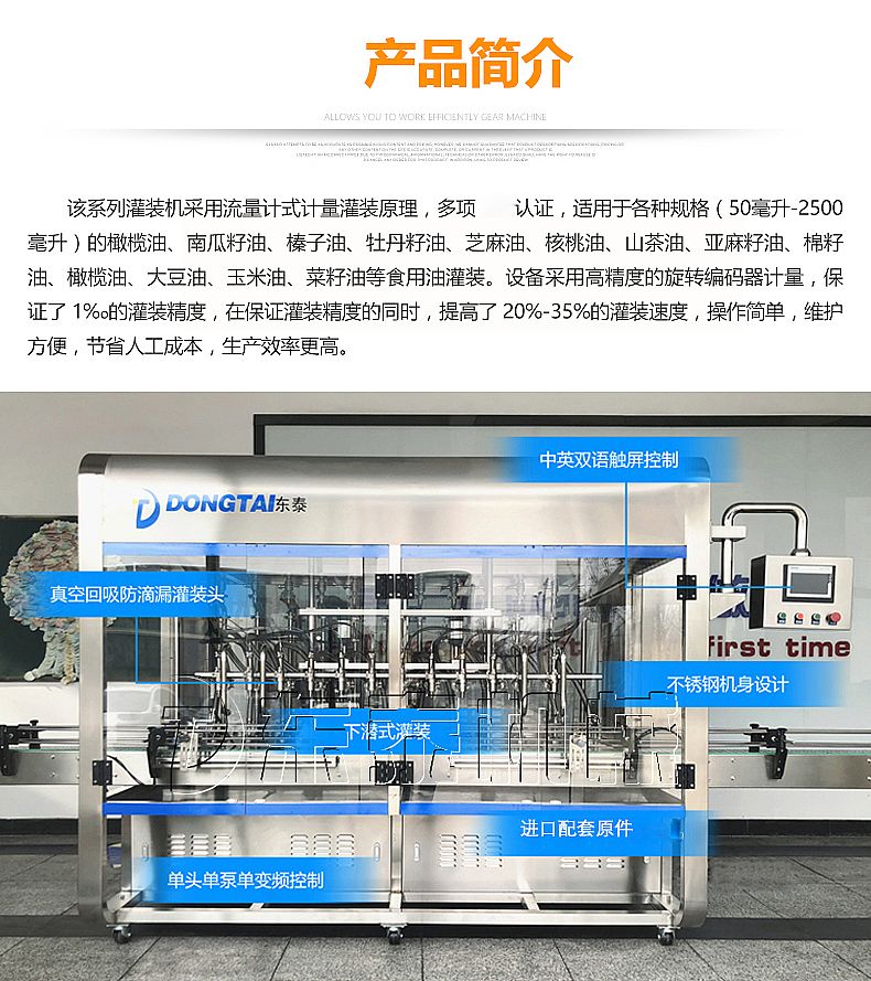 5.橄欖油灌裝封蓋機(jī)采用國(guó)際新工藝設(shè)計(jì),符合GMP標(biāo)準(zhǔn)。